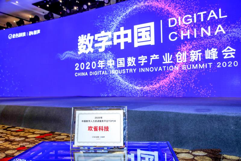欢雀科技荣获2020年中国数字化人力资源服务平台TOP30。