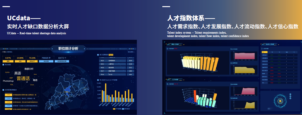 成立半年多以来,已经有了多项技术成果,包括粤港澳大湾区实时人才缺口数据分析大屏(UCdata),
