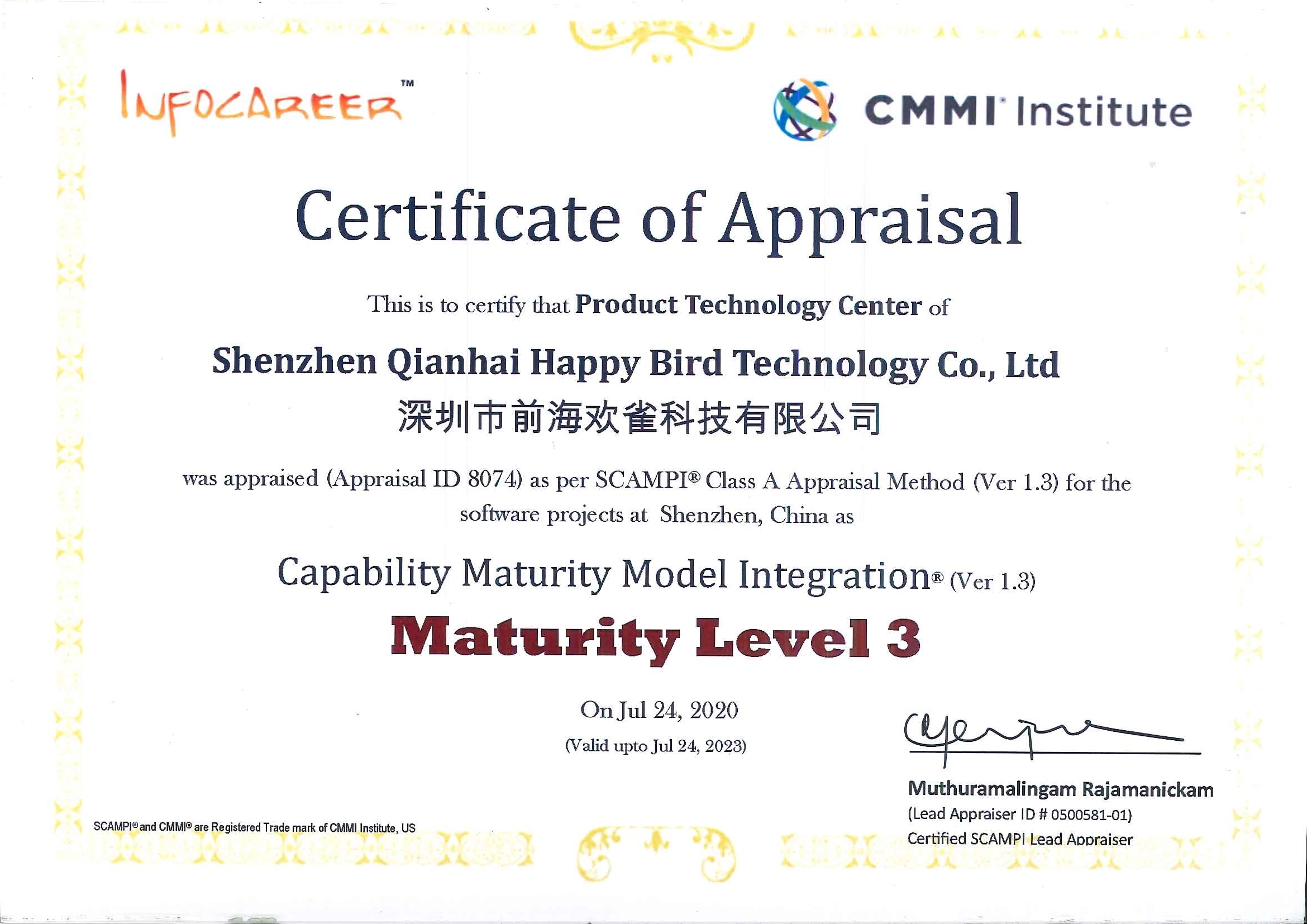 这标志着公司在软件研发能力、服务交付以及项目管理水平得到权威机构CMMI Institute认可,欢雀科技的软件综合开发和项目管理能力已达到国际标准。